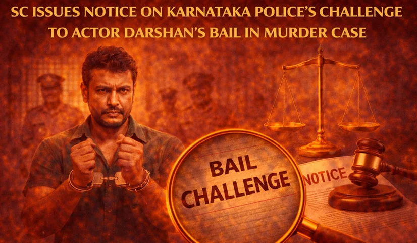 On January 24, the Supreme Court issued a notice in response to a Special Leave Petition (SLP) filed by the Karnataka State Government. The petition challenges an order of the Karnataka High Court, which had granted bail to actor Darshan in connection with the high-profile Renukaswamy murder case. The State Government has expressed concerns over the High Court's decision, arguing that it might undermine the gravity of the charges against the accused and could potentially hinder the ongoing investigation.